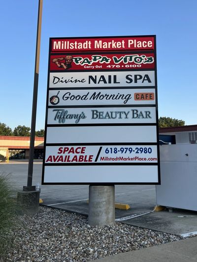 Millstadt Market Place contains 11 businesses of different varieties. We have a Dollar General Store in the out parcel creating continuous traffic. The market place offers a clear span steel building with a sprinkling system for safety and flexible design. Parking is never an issue here, with 130 spaces to choose from.